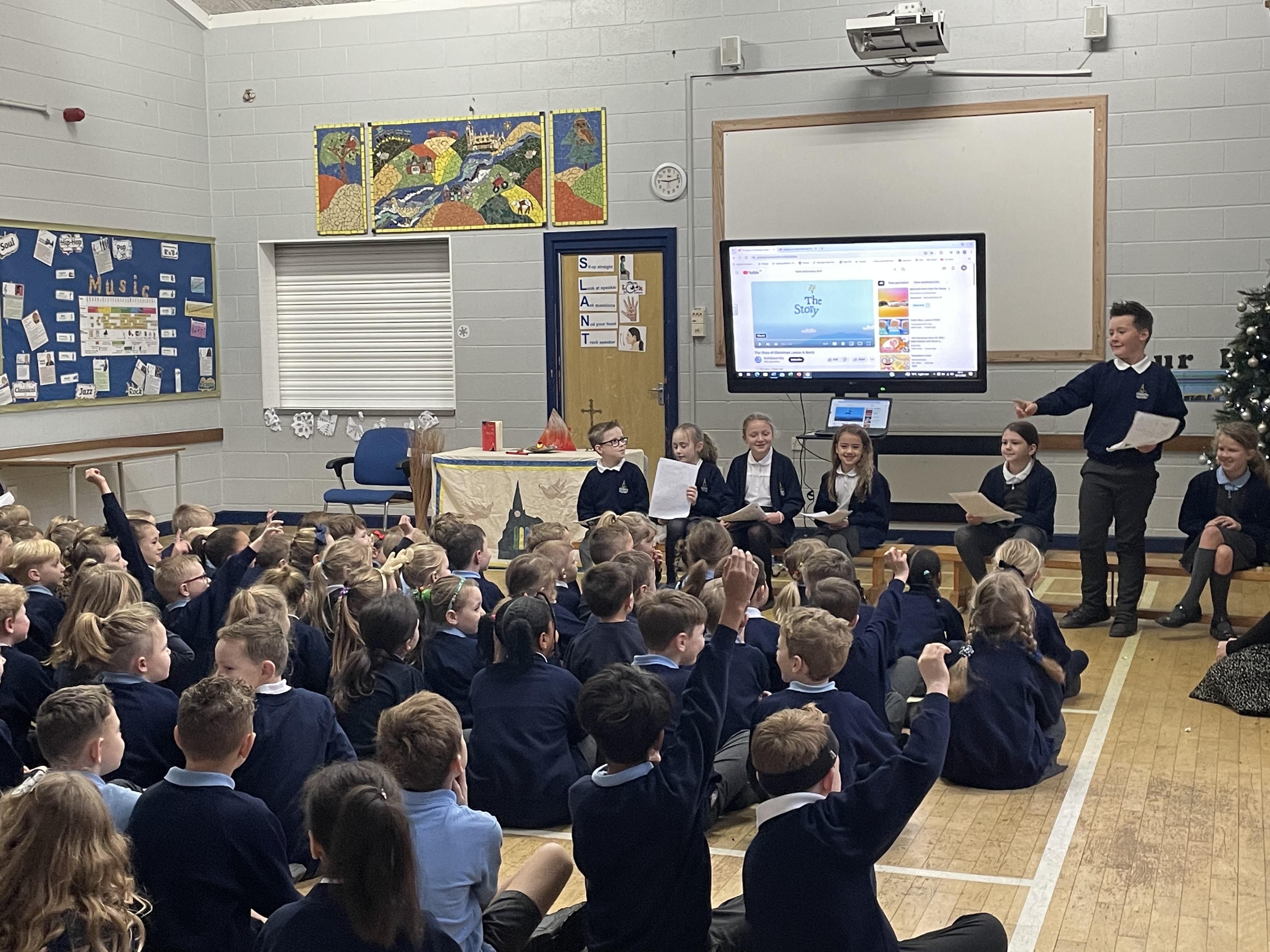 The Bluebirds Nativity (with narration by the Eagles) followed by 'The Bethlehem Bed & Breakfast' by the Wagtails and a Christmas message from Mr Wells.