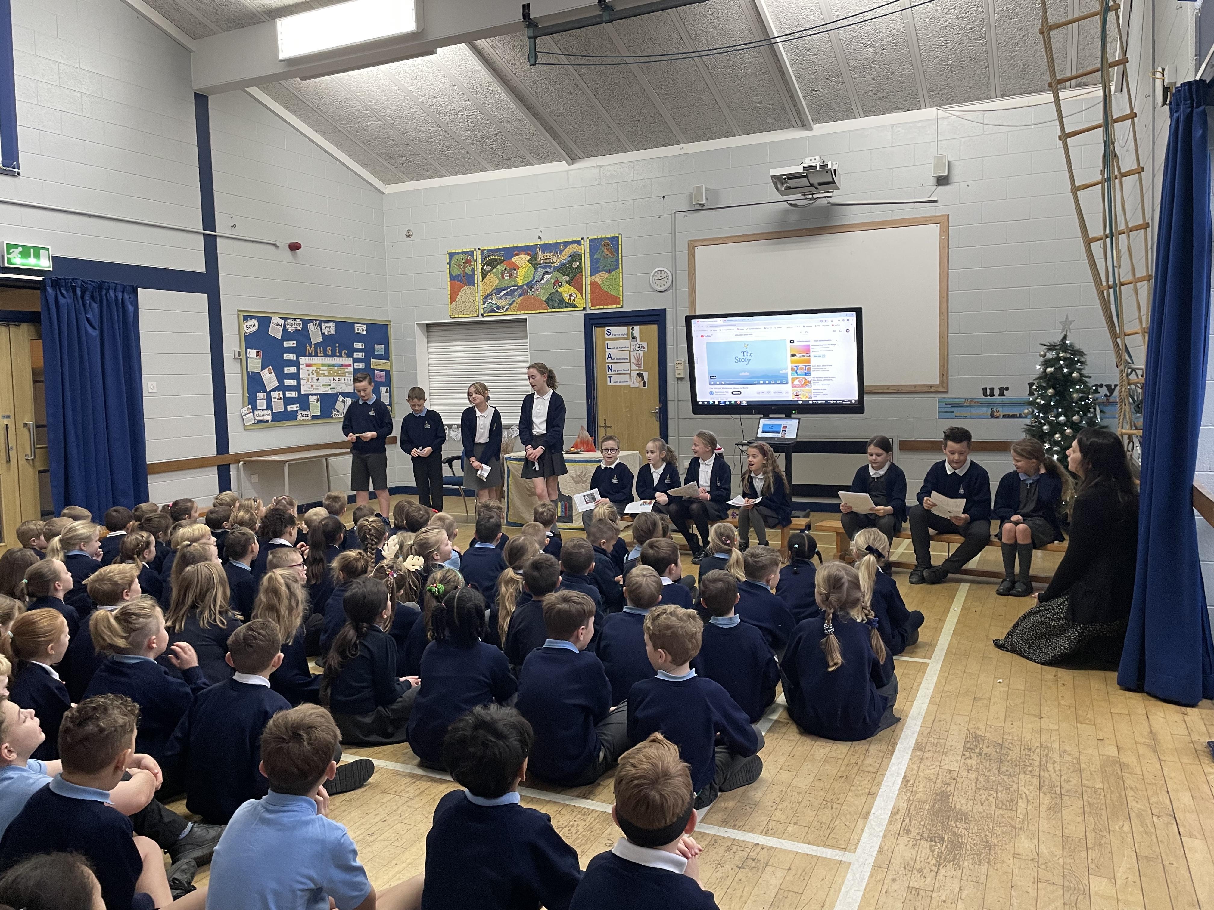The Bluebirds Nativity (with narration by the Eagles) followed by 'The Bethlehem Bed & Breakfast' by the Wagtails and a Christmas message from Mr Wells.