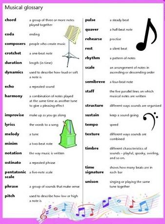 - reflect on music listened to and discuss its parts using terms such as pitch, duration, timbre, dynamics and texture;