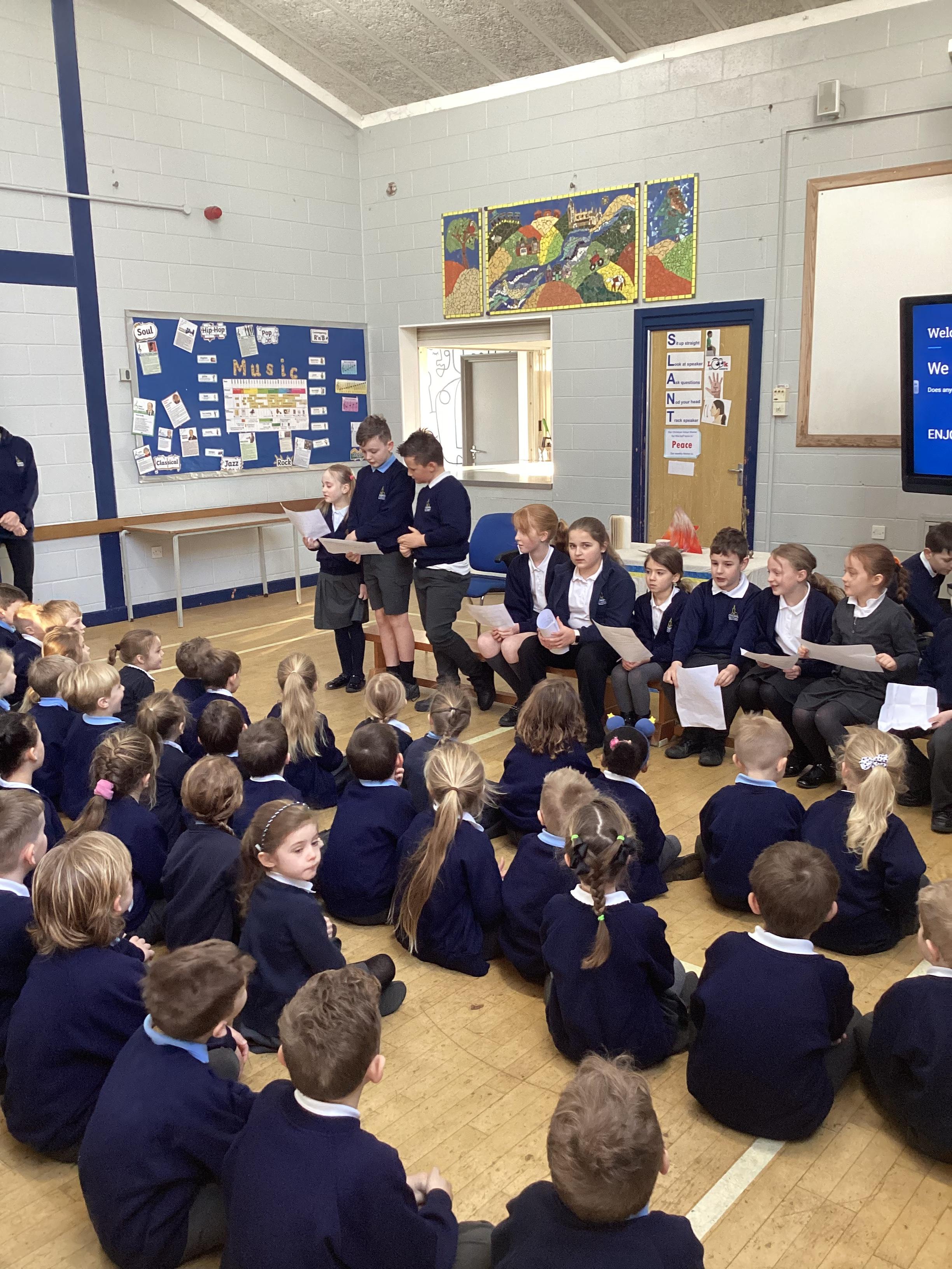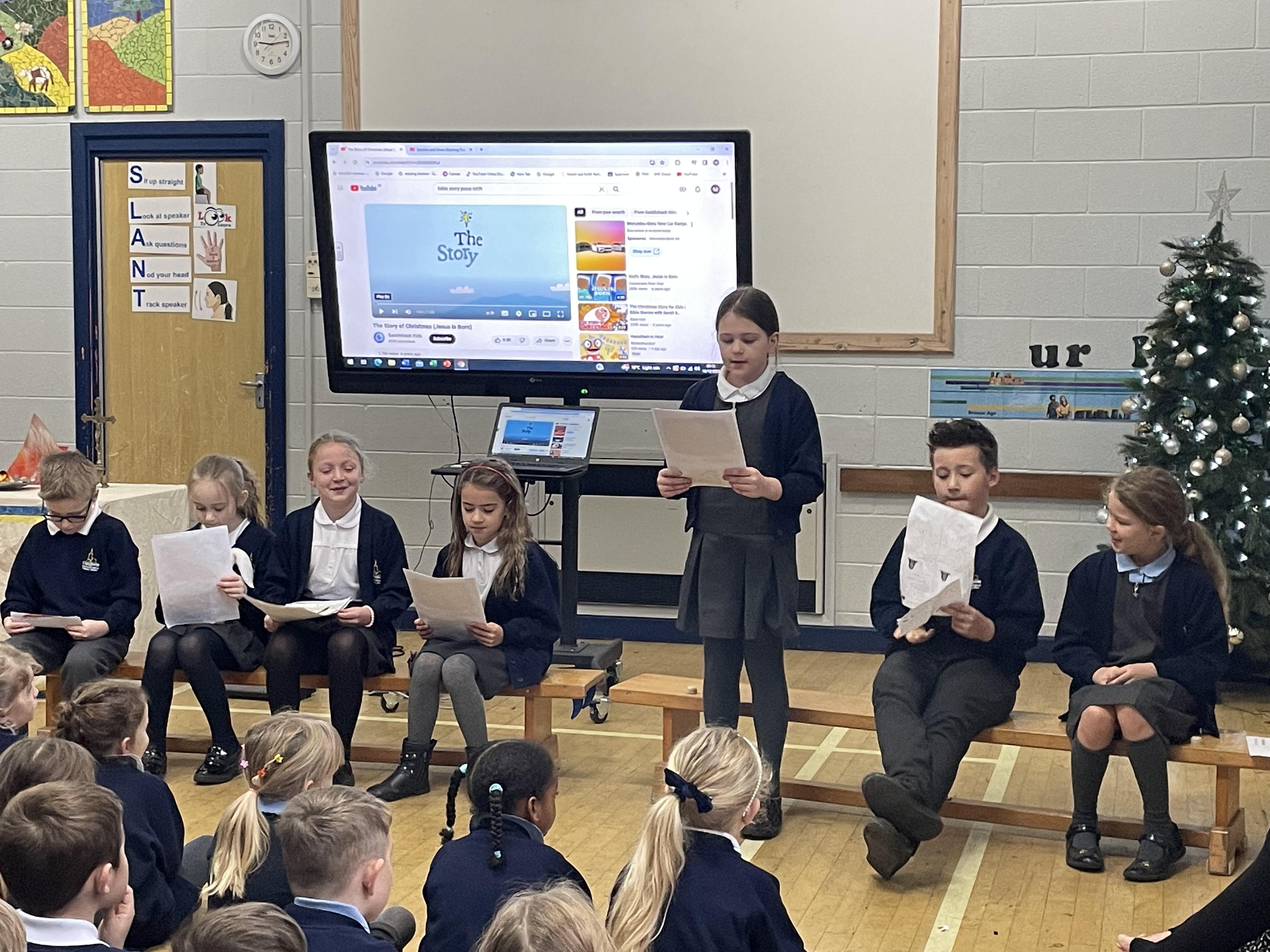 The Bluebirds Nativity (with narration by the Eagles) followed by 'The Bethlehem Bed & Breakfast' by the Wagtails and a Christmas message from Mr Wells.